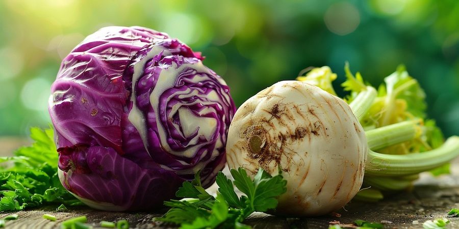 Prepare a vegetable pasta: cut the celeriac and red cabbage into thin strips, fry them in olive oil with garlic, add a little tomato paste and season to taste. The mixture is then mixed with freshly cooked pasta to make a healthy, colourful and tasty dish. Another great idea is a celeriac and red cabbage salad, which brings freshness and crunch to meals. Thinly slice celeriac and red cabbage, add fresh apples and walnuts and toss with a light mustard dressing. This salad can be the perfect accompaniment to any main course, or even stand alone as a light, nutritious lunch. Overall, celeriac and red cabbage are extremely versatile vegetables. By using them creatively, you can create varied and nutritious dishes that contribute to a healthy diet.