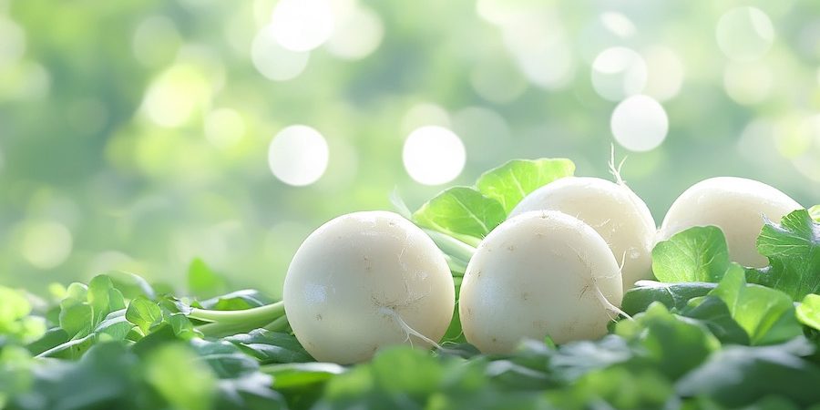 Butter radishes (Raphanus sativus) are a member of the radish family and are a particularly delicate, mild-tasting vegetable. It is easily recognised by its creamy, white or pale yellowish skin and crisp, yet pleasantly soft inside. In Europe, it is mainly grown in large quantities in Central and Western Europe. Its roots can be traced back to Asia, more specifically to China and Japan, where it has been highly valued for thousands of years for its nutritional and medicinal value.